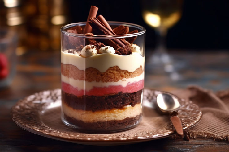 - Repeat the layers and dust with cocoa powder. Chill before serving.